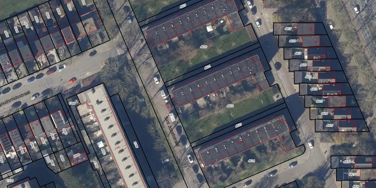 Het perceel waarop Sint Jozefstraat 90 staat heeft een oppervlakte van 1755 m². Dit is een zeer groot perceel. De perceeloppervlakte wordt geregistreerd door het Kadaster. Gedetailleerde informatie over de maten van dit perceel kunt u vinden in het rapport Kadastrale kaart met maatvoering van Sint Jozefstraat 90.