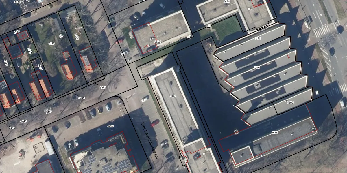 Het perceel waarop Sint Laurentiusstraat 17 staat heeft een oppervlakte van 1500 m². Dit is een zeer groot perceel. De perceeloppervlakte wordt geregistreerd door het Kadaster. Gedetailleerde informatie over de maten van dit perceel kunt u vinden in het rapport Kadastrale kaart met maatvoering van Sint Laurentiusstraat 17.