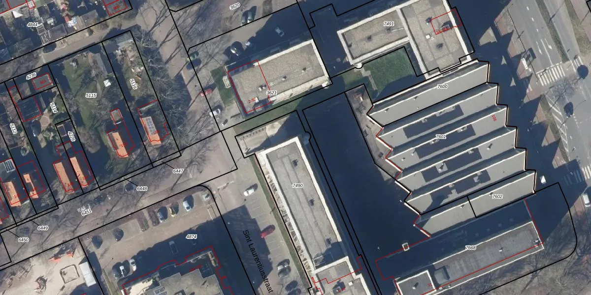 Het perceel waarop Sint Laurentiusstraat 9 staat heeft een oppervlakte van 1500 m². Dit is een zeer groot perceel. De perceeloppervlakte wordt geregistreerd door het Kadaster. Gedetailleerde informatie over de maten van dit perceel kunt u vinden in het rapport Kadastrale kaart met maatvoering van Sint Laurentiusstraat 9.