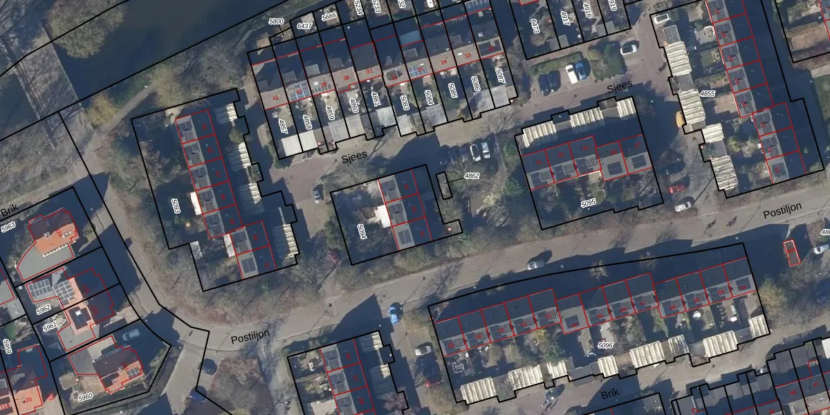 Het perceel waarop Sjees 43 staat heeft een oppervlakte van 449 m². Dit is een groot perceel. De perceeloppervlakte wordt geregistreerd door het Kadaster. Gedetailleerde informatie over de maten van dit perceel kunt u vinden in het rapport Kadastrale kaart met maatvoering van Sjees 43.