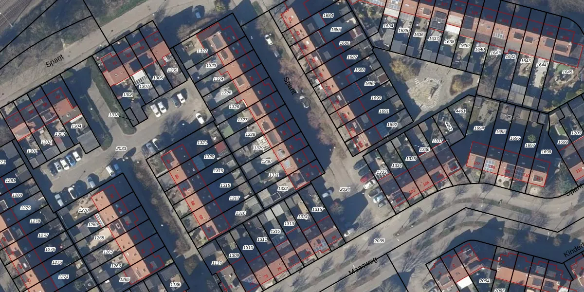 Het perceel waarop Spant 83 staat heeft een oppervlakte van 132 m². Dit is een middelgroot perceel. De perceeloppervlakte wordt geregistreerd door het Kadaster. Gedetailleerde informatie over de maten van dit perceel kunt u vinden in het rapport Kadastrale kaart met maatvoering van Spant 83.