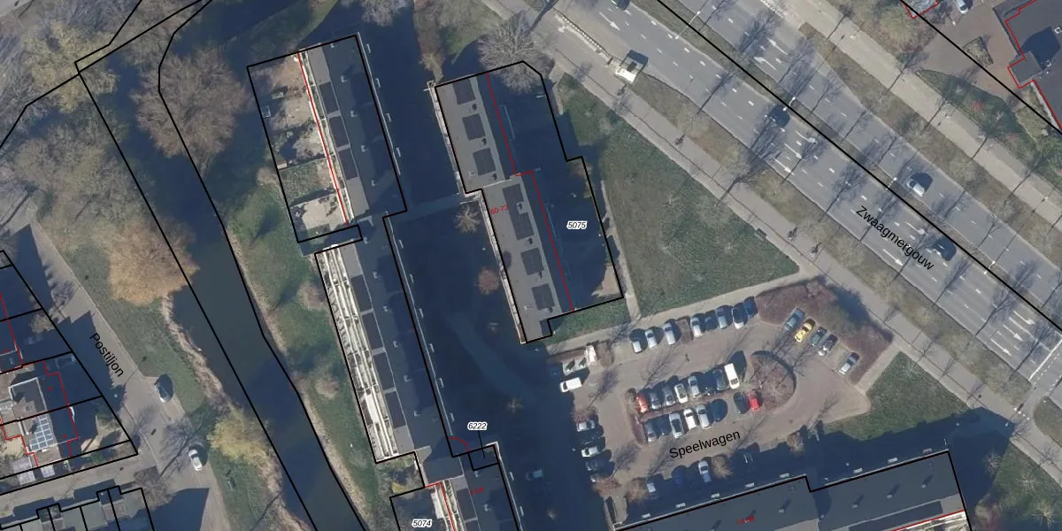 Het perceel waarop Speelwagen 68 staat heeft een oppervlakte van 977 m². Dit is een groot perceel. De perceeloppervlakte wordt geregistreerd door het Kadaster. Gedetailleerde informatie over de maten van dit perceel kunt u vinden in het rapport Kadastrale kaart met maatvoering van Speelwagen 68.
