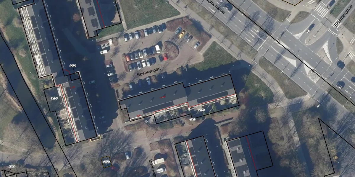 Het perceel waarop Speelwagen 76 staat heeft een oppervlakte van 1063 m². Dit is een zeer groot perceel. De perceeloppervlakte wordt geregistreerd door het Kadaster. Gedetailleerde informatie over de maten van dit perceel kunt u vinden in het rapport Kadastrale kaart met maatvoering van Speelwagen 76.