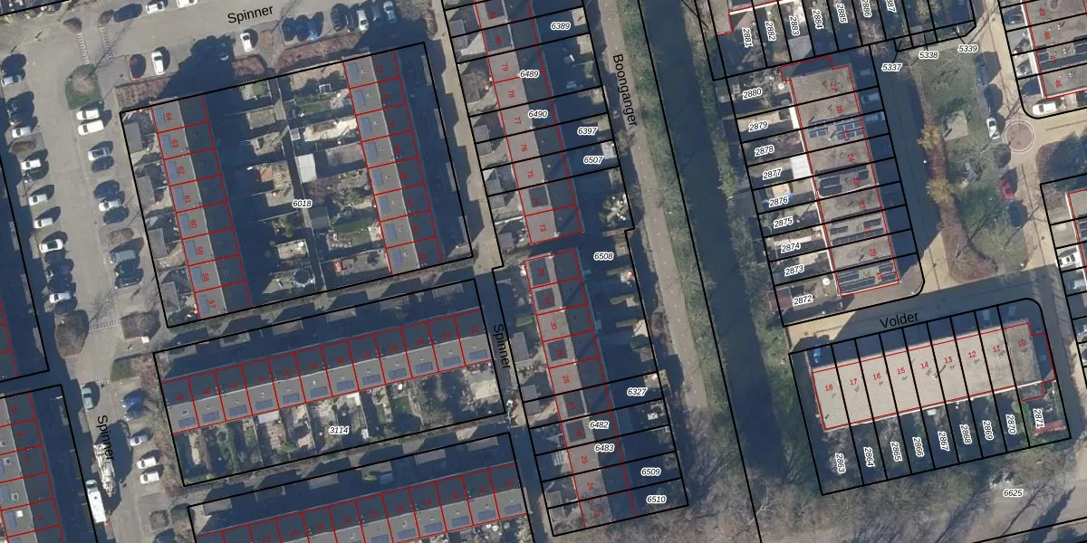 Het perceel waarop Spinner 32 staat heeft een oppervlakte van 970 m². Dit is een groot perceel. De perceeloppervlakte wordt geregistreerd door het Kadaster. Gedetailleerde informatie over de maten van dit perceel kunt u vinden in het rapport Kadastrale kaart met maatvoering van Spinner 32.