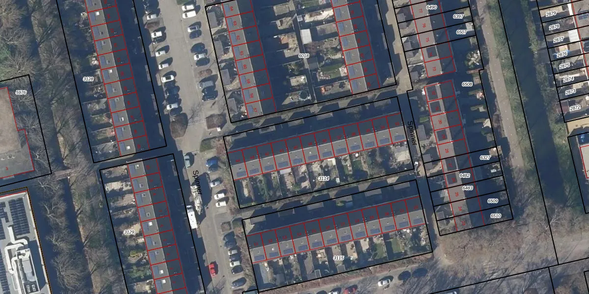 Het perceel waarop Spinner 40 staat heeft een oppervlakte van 1541 m². Dit is een zeer groot perceel. De perceeloppervlakte wordt geregistreerd door het Kadaster. Gedetailleerde informatie over de maten van dit perceel kunt u vinden in het rapport Kadastrale kaart met maatvoering van Spinner 40.