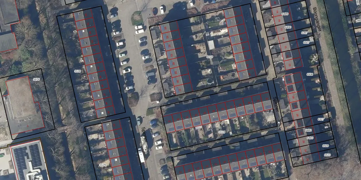 Het perceel waarop Spinner 57 staat heeft een oppervlakte van 2356 m². Dit is een zeer groot perceel. De perceeloppervlakte wordt geregistreerd door het Kadaster. Gedetailleerde informatie over de maten van dit perceel kunt u vinden in het rapport Kadastrale kaart met maatvoering van Spinner 57.