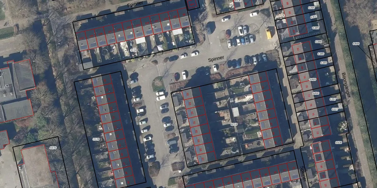 Het perceel waarop Spinner 64 staat heeft een oppervlakte van 2356 m². Dit is een zeer groot perceel. De perceeloppervlakte wordt geregistreerd door het Kadaster. Gedetailleerde informatie over de maten van dit perceel kunt u vinden in het rapport Kadastrale kaart met maatvoering van Spinner 64.