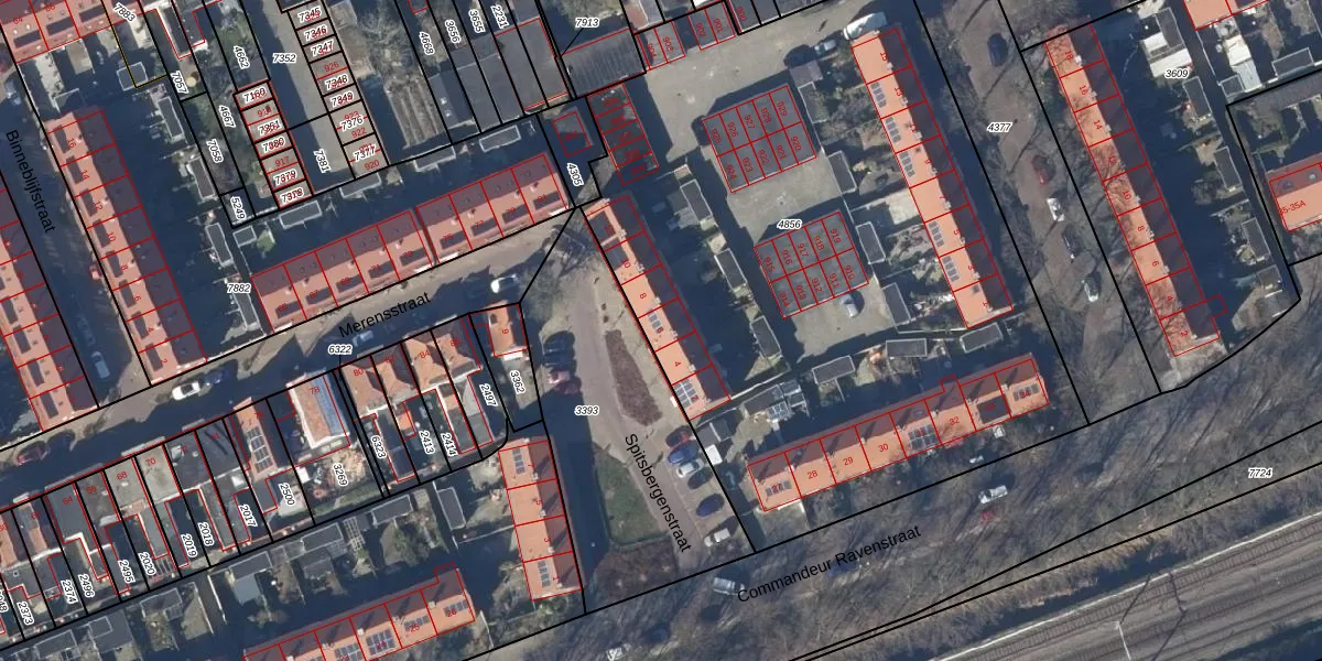 Het perceel waarop Spitsbergenstraat 6 staat heeft een oppervlakte van 4232 m². Dit is een zeer groot perceel. De perceeloppervlakte wordt geregistreerd door het Kadaster. Gedetailleerde informatie over de maten van dit perceel kunt u vinden in het rapport Kadastrale kaart met maatvoering van Spitsbergenstraat 6.