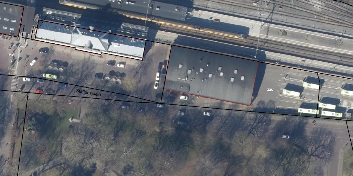 Het perceel waarop Stationsplein 2 staat heeft een oppervlakte van 2560 m². Dit is een zeer groot perceel. De perceeloppervlakte wordt geregistreerd door het Kadaster. Gedetailleerde informatie over de maten van dit perceel kunt u vinden in het rapport Kadastrale kaart met maatvoering van Stationsplein 2.