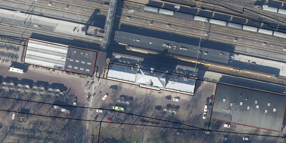 Het perceel waarop Stationsplein 6 staat heeft een oppervlakte van 745 m². Dit is een groot perceel. De perceeloppervlakte wordt geregistreerd door het Kadaster. Gedetailleerde informatie over de maten van dit perceel kunt u vinden in het rapport Kadastrale kaart met maatvoering van Stationsplein 6.