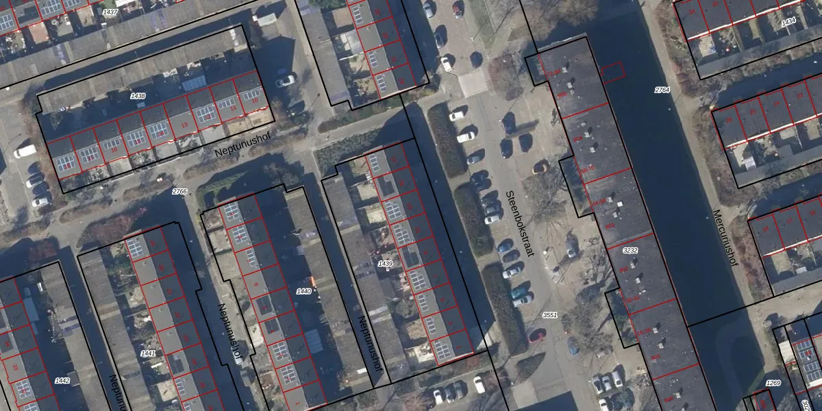 Het perceel waarop Steenbokstraat 13 staat heeft een oppervlakte van 1346 m². Dit is een zeer groot perceel. De perceeloppervlakte wordt geregistreerd door het Kadaster. Gedetailleerde informatie over de maten van dit perceel kunt u vinden in het rapport Kadastrale kaart met maatvoering van Steenbokstraat 13.