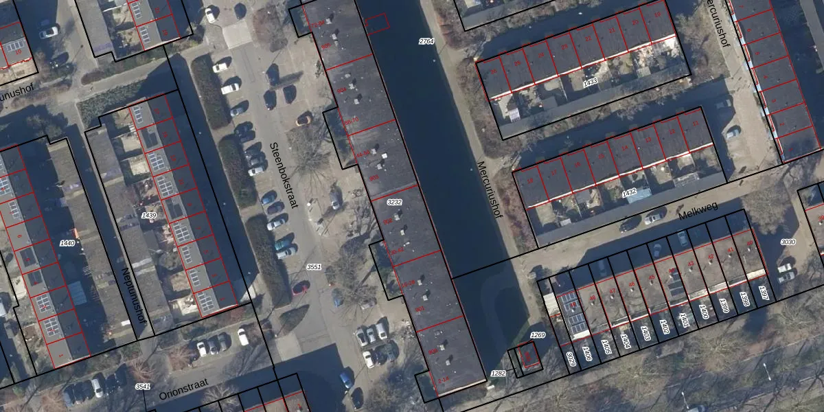 Het perceel waarop Steenbokstraat 42 staat heeft een oppervlakte van 1421 m². Dit is een zeer groot perceel. De perceeloppervlakte wordt geregistreerd door het Kadaster. Gedetailleerde informatie over de maten van dit perceel kunt u vinden in het rapport Kadastrale kaart met maatvoering van Steenbokstraat 42.
