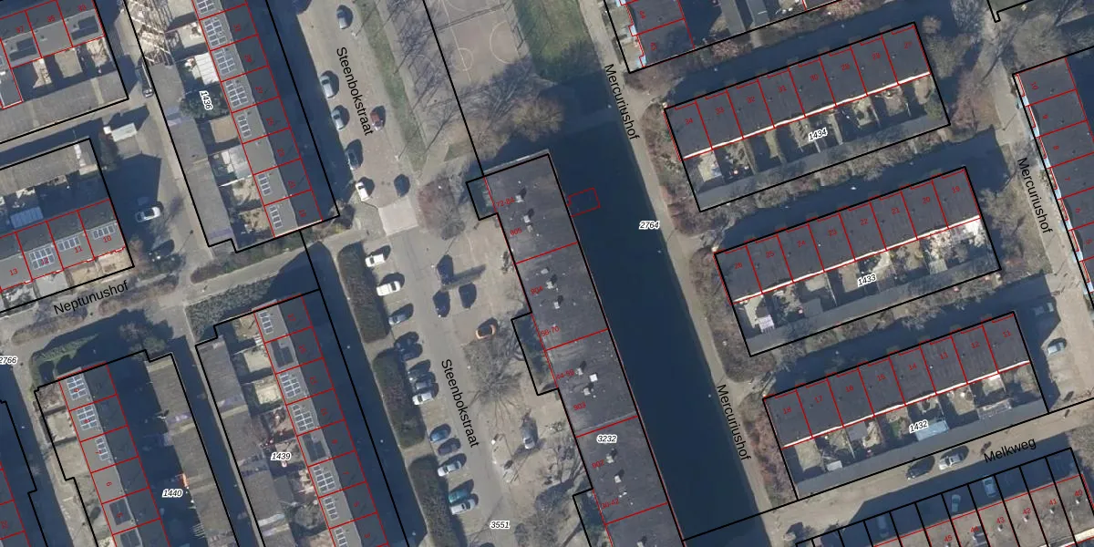 Het perceel waarop Steenbokstraat 62 staat heeft een oppervlakte van 1421 m². Dit is een zeer groot perceel. De perceeloppervlakte wordt geregistreerd door het Kadaster. Gedetailleerde informatie over de maten van dit perceel kunt u vinden in het rapport Kadastrale kaart met maatvoering van Steenbokstraat 62.