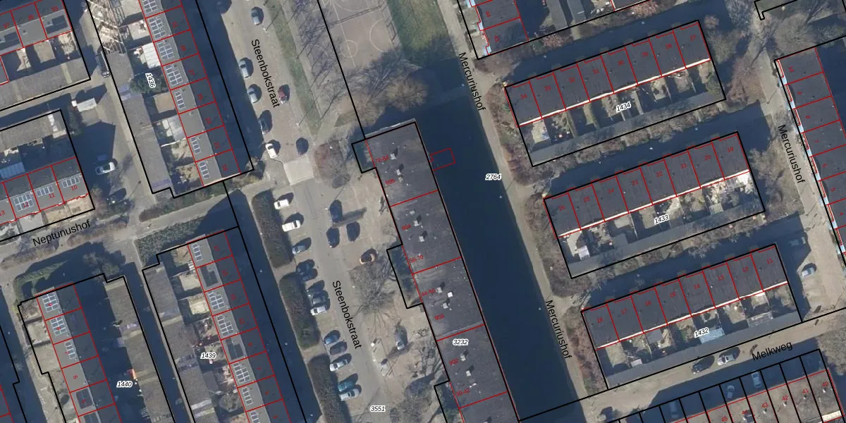 Het perceel waarop Steenbokstraat 66 staat heeft een oppervlakte van 1421 m². Dit is een zeer groot perceel. De perceeloppervlakte wordt geregistreerd door het Kadaster. Gedetailleerde informatie over de maten van dit perceel kunt u vinden in het rapport Kadastrale kaart met maatvoering van Steenbokstraat 66.