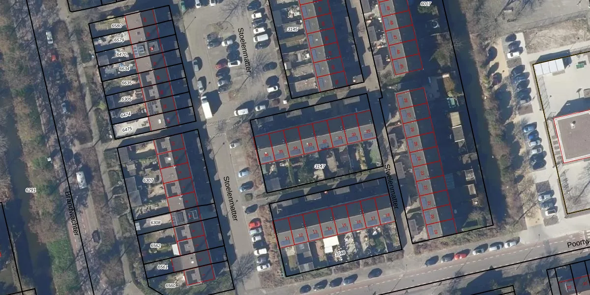 Stoelenmatter 34 is gelegen op kadastraal perceel HOO00F3147. Deze kadastrale aanduiding is uniek en wordt gebruikt door het Kadaster om eigendomsrechten en andere zakelijke rechten vast te leggen. Het perceel maakt onderdeel uit van de kadastrale gemeente Hoorn.
