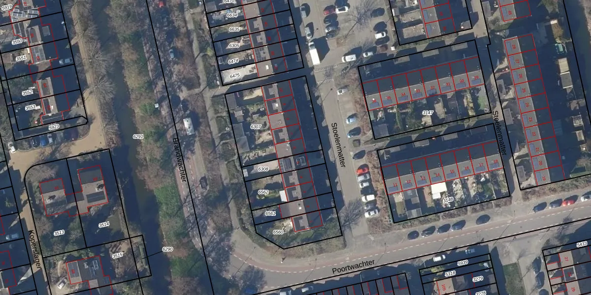 Stoelenmatter 6 is gelegen op kadastraal perceel HOO00F6307. Deze kadastrale aanduiding is uniek en wordt gebruikt door het Kadaster om eigendomsrechten en andere zakelijke rechten vast te leggen. Het perceel maakt onderdeel uit van de kadastrale gemeente Hoorn.