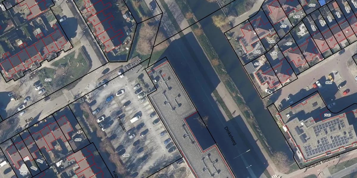 Het perceel waarop Timpaan 18 staat heeft een oppervlakte van 2895 m². Dit is een zeer groot perceel. De perceeloppervlakte wordt geregistreerd door het Kadaster. Gedetailleerde informatie over de maten van dit perceel kunt u vinden in het rapport Kadastrale kaart met maatvoering van Timpaan 18.