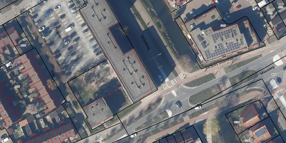 Het perceel waarop Timpaan 34 staat heeft een oppervlakte van 2895 m². Dit is een zeer groot perceel. De perceeloppervlakte wordt geregistreerd door het Kadaster. Gedetailleerde informatie over de maten van dit perceel kunt u vinden in het rapport Kadastrale kaart met maatvoering van Timpaan 34.