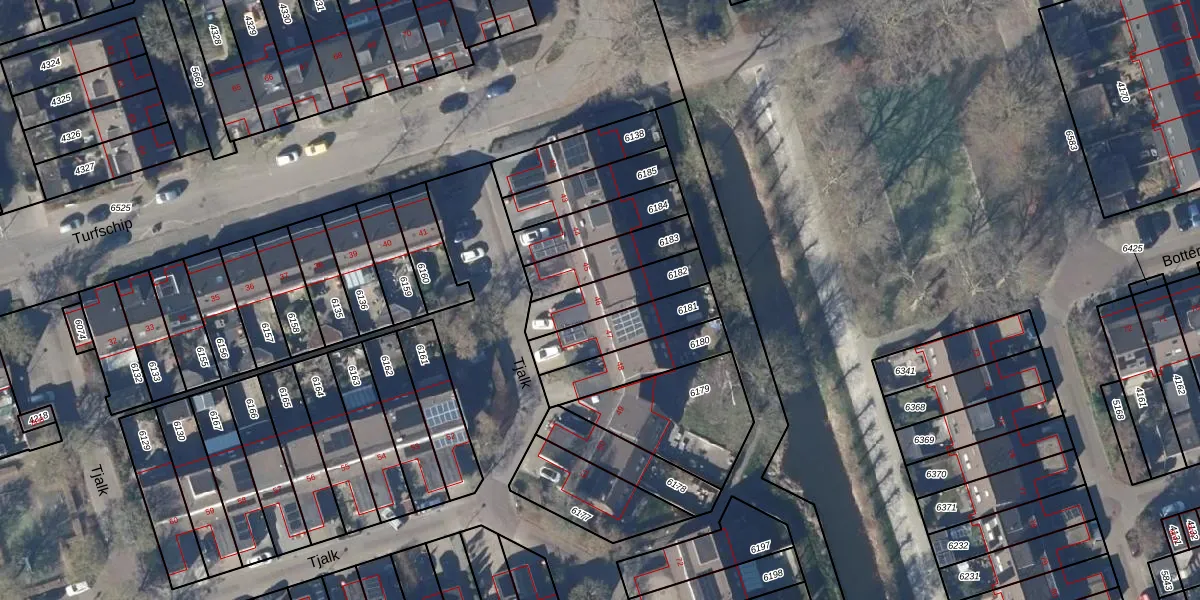 Het perceel waarop Tjalk 46 staat heeft een oppervlakte van 187 m². Dit is een middelgroot perceel. De perceeloppervlakte wordt geregistreerd door het Kadaster. Gedetailleerde informatie over de maten van dit perceel kunt u vinden in het rapport Kadastrale kaart met maatvoering van Tjalk 46.