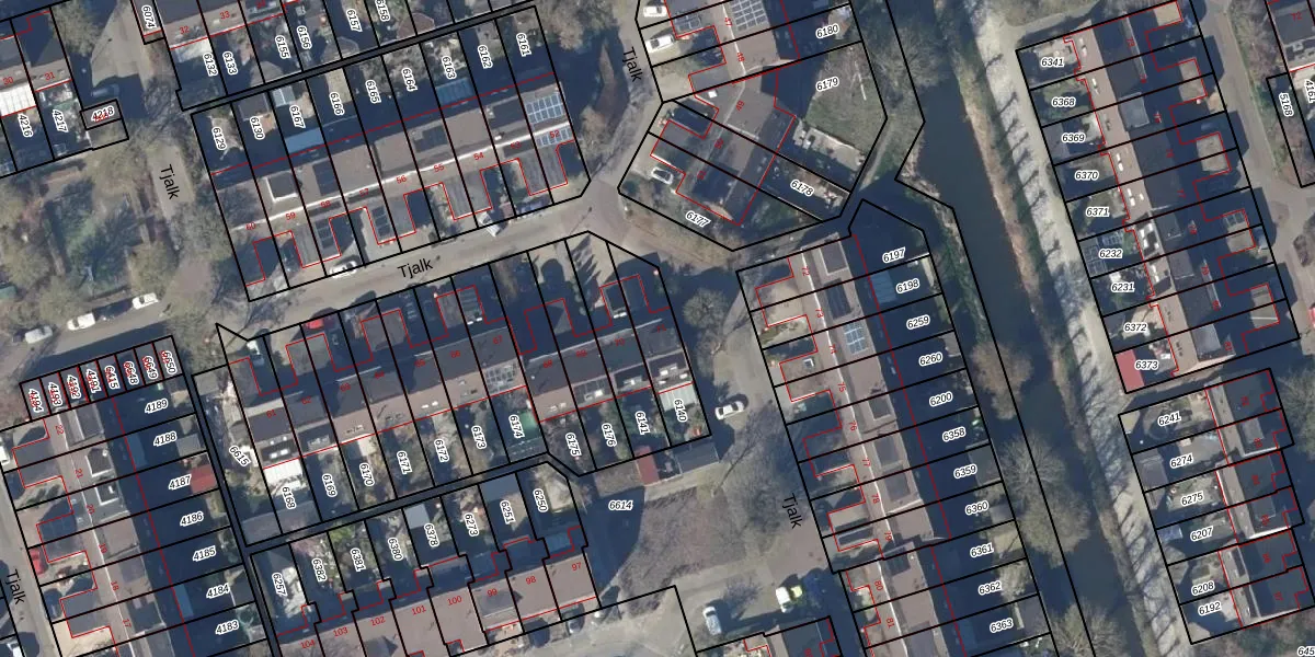 Gebruik de zoekbalk of klik op een perceel voor informatie over de adressen binnen dit perceel.