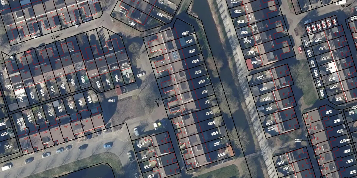 Het perceel waarop Tjalk 77 staat heeft een oppervlakte van 173 m². Dit is een middelgroot perceel. De perceeloppervlakte wordt geregistreerd door het Kadaster. Gedetailleerde informatie over de maten van dit perceel kunt u vinden in het rapport Kadastrale kaart met maatvoering van Tjalk 77.