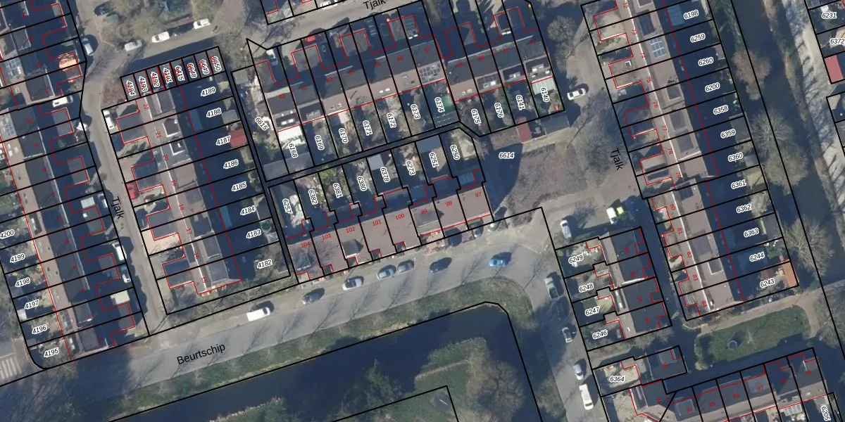 Het perceel waarop Tjalk 99 staat heeft een oppervlakte van 142 m². Dit is een middelgroot perceel. De perceeloppervlakte wordt geregistreerd door het Kadaster. Gedetailleerde informatie over de maten van dit perceel kunt u vinden in het rapport Kadastrale kaart met maatvoering van Tjalk 99.