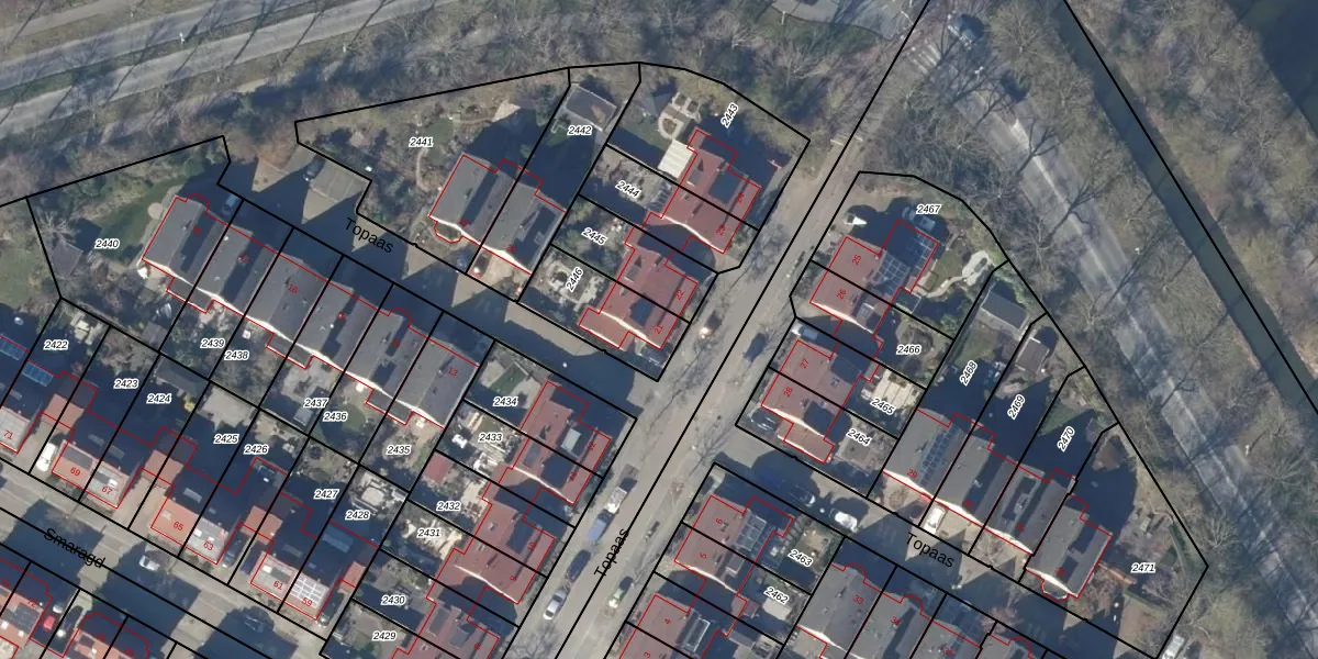 Het perceel waarop Topaas 21 staat heeft een oppervlakte van 249 m². Dit is een middelgroot perceel. De perceeloppervlakte wordt geregistreerd door het Kadaster. Gedetailleerde informatie over de maten van dit perceel kunt u vinden in het rapport Kadastrale kaart met maatvoering van Topaas 21.