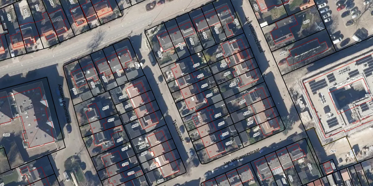 Het perceel waarop Tyrasstraat 12 staat heeft een oppervlakte van 143 m². Dit is een middelgroot perceel. De perceeloppervlakte wordt geregistreerd door het Kadaster. Gedetailleerde informatie over de maten van dit perceel kunt u vinden in het rapport Kadastrale kaart met maatvoering van Tyrasstraat 12.