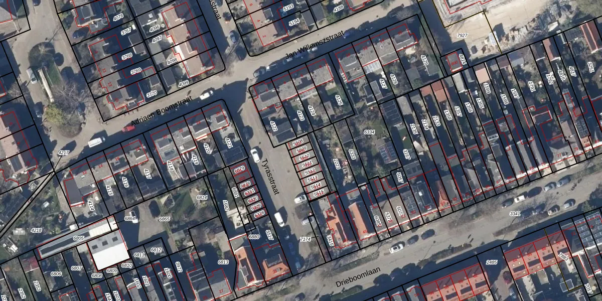 Gebruik de zoekbalk of klik op een perceel voor informatie over de adressen binnen dit perceel.
