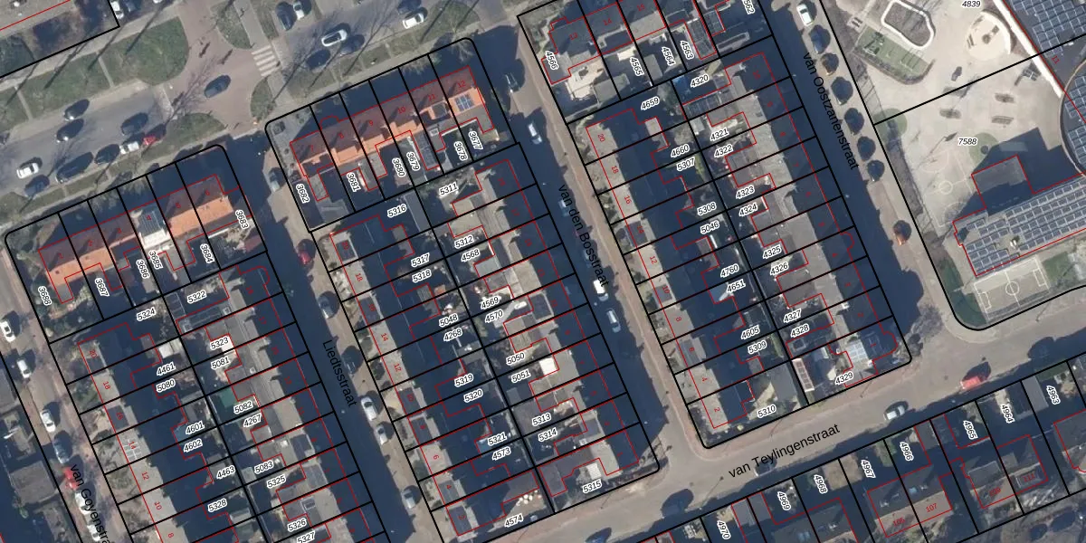 Gebruik de zoekbalk of klik op een perceel voor informatie over de adressen binnen dit perceel.
