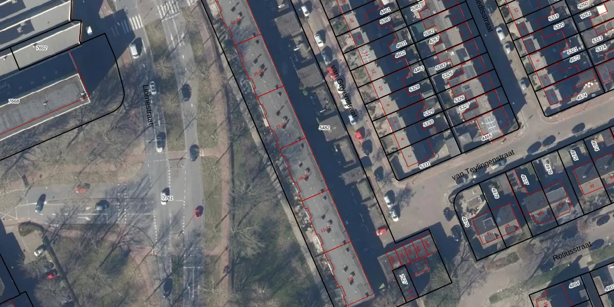 Het perceel waarop van Goyenstraat 21 staat heeft een oppervlakte van 3502 m². Dit is een zeer groot perceel. De perceeloppervlakte wordt geregistreerd door het Kadaster. Gedetailleerde informatie over de maten van dit perceel kunt u vinden in het rapport Kadastrale kaart met maatvoering van van Goyenstraat 21.