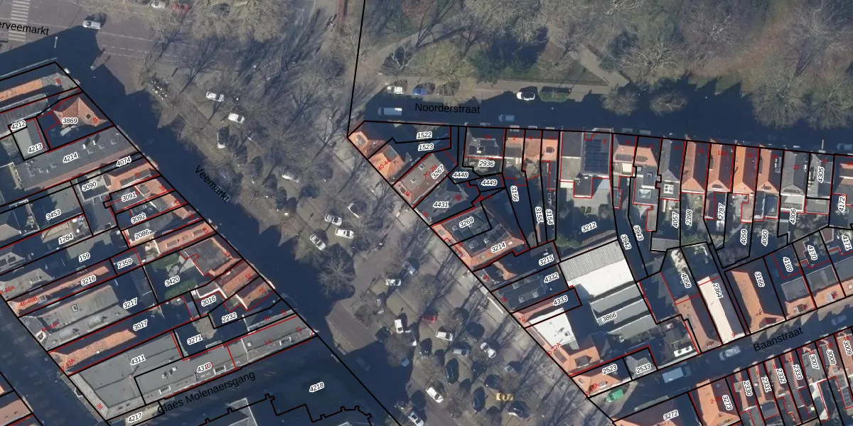 Het perceel waarop Veemarkt 36 staat heeft een oppervlakte van 108 m². Dit is een middelgroot perceel. De perceeloppervlakte wordt geregistreerd door het Kadaster. Gedetailleerde informatie over de maten van dit perceel kunt u vinden in het rapport Kadastrale kaart met maatvoering van Veemarkt 36.