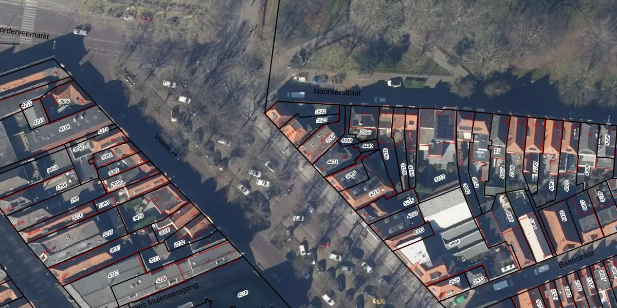 Het perceel waarop Veemarkt 38 staat heeft een oppervlakte van 118 m². Dit is een middelgroot perceel. De perceeloppervlakte wordt geregistreerd door het Kadaster. Gedetailleerde informatie over de maten van dit perceel kunt u vinden in het rapport Kadastrale kaart met maatvoering van Veemarkt 38.