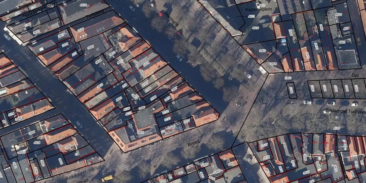 Het perceel waarop Veemarkt 5-A staat heeft een oppervlakte van 100 m². Dit is een middelgroot perceel. De perceeloppervlakte wordt geregistreerd door het Kadaster. Gedetailleerde informatie over de maten van dit perceel kunt u vinden in het rapport Kadastrale kaart met maatvoering van Veemarkt 5-A.