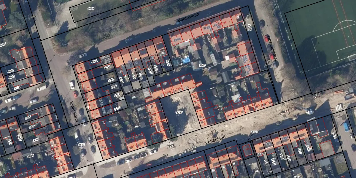 Het perceel waarop Venenlaan 227-C staat heeft een oppervlakte van 3858 m². Dit is een zeer groot perceel. De perceeloppervlakte wordt geregistreerd door het Kadaster. Gedetailleerde informatie over de maten van dit perceel kunt u vinden in het rapport Kadastrale kaart met maatvoering van Venenlaan 227-C.