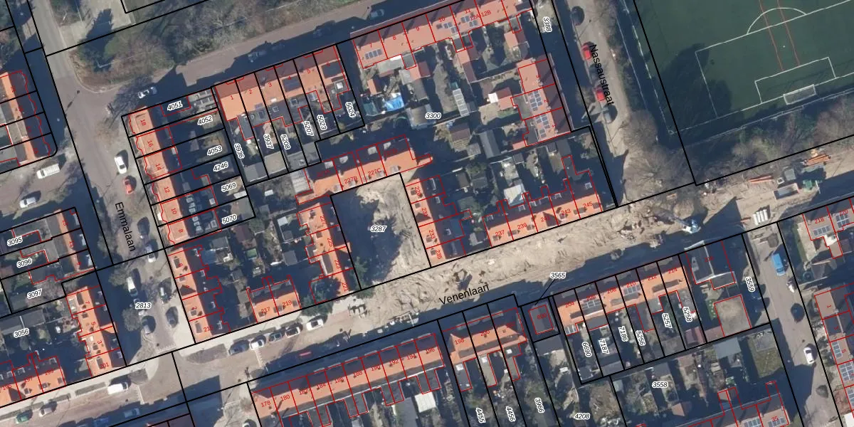 Het perceel waarop Venenlaan 231 staat heeft een oppervlakte van 3858 m². Dit is een zeer groot perceel. De perceeloppervlakte wordt geregistreerd door het Kadaster. Gedetailleerde informatie over de maten van dit perceel kunt u vinden in het rapport Kadastrale kaart met maatvoering van Venenlaan 231.