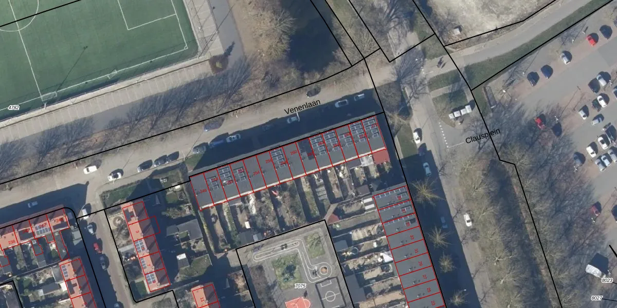 Het perceel waarop Venenlaan 262 staat heeft een oppervlakte van 9437 m². Dit is een zeer groot perceel. De perceeloppervlakte wordt geregistreerd door het Kadaster. Gedetailleerde informatie over de maten van dit perceel kunt u vinden in het rapport Kadastrale kaart met maatvoering van Venenlaan 262.