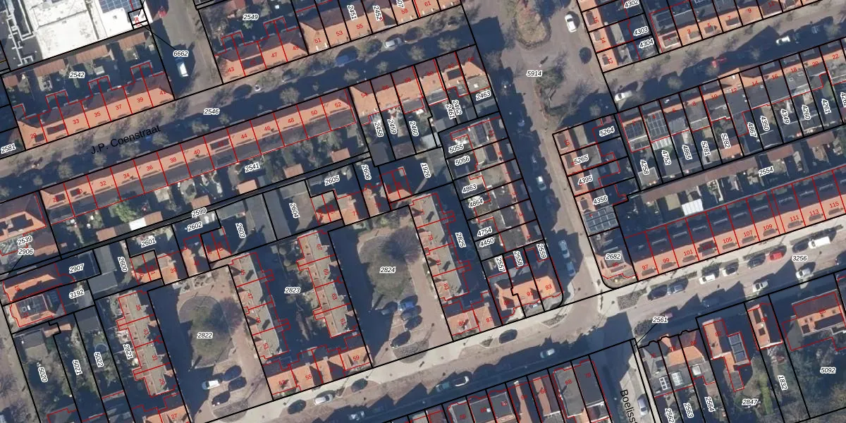 Het adres is gelegen op perceel 2825 in de sectie D en de kadastrale gemeente Hoorn. De kadastrale aanduiding is aldus HOO00-D-2825. Het perceel is 434 m² groot. Dat is kleiner dan de gemiddelde perceeloppervlakte in Hoorn, dat op 1772,48 m² ligt. Het grootste perceel in de kadastrale gemeente is 28,77 km². Het kleinste perceel heeft een oppervlakte van 0 m². Op het perceel zijn 6 adressen aanwezig. De huidige grenzen van het perceel zijn digitaal in de Basisregistratie Kadaster (BRK) geregistreerd op 05-06-2003.