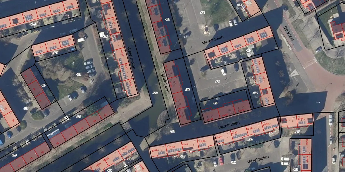 Het perceel waarop Vijzelmolen 33 staat heeft een oppervlakte van 459 m². Dit is een groot perceel. De perceeloppervlakte wordt geregistreerd door het Kadaster. Gedetailleerde informatie over de maten van dit perceel kunt u vinden in het rapport Kadastrale kaart met maatvoering van Vijzelmolen 33.