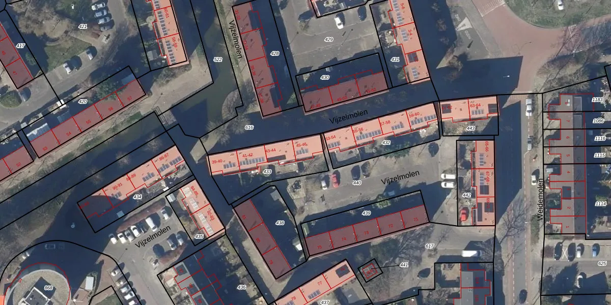Vijzelmolen 46 is gelegen op kadastraal perceel HOO00M433. Deze kadastrale aanduiding is uniek en wordt gebruikt door het Kadaster om eigendomsrechten en andere zakelijke rechten vast te leggen. Het perceel maakt onderdeel uit van de kadastrale gemeente Hoorn.