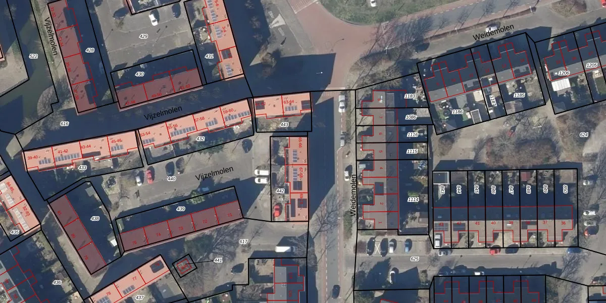 Het perceel waarop Vijzelmolen 65 staat heeft een oppervlakte van 346 m². Dit is een groot perceel. De perceeloppervlakte wordt geregistreerd door het Kadaster. Gedetailleerde informatie over de maten van dit perceel kunt u vinden in het rapport Kadastrale kaart met maatvoering van Vijzelmolen 65.