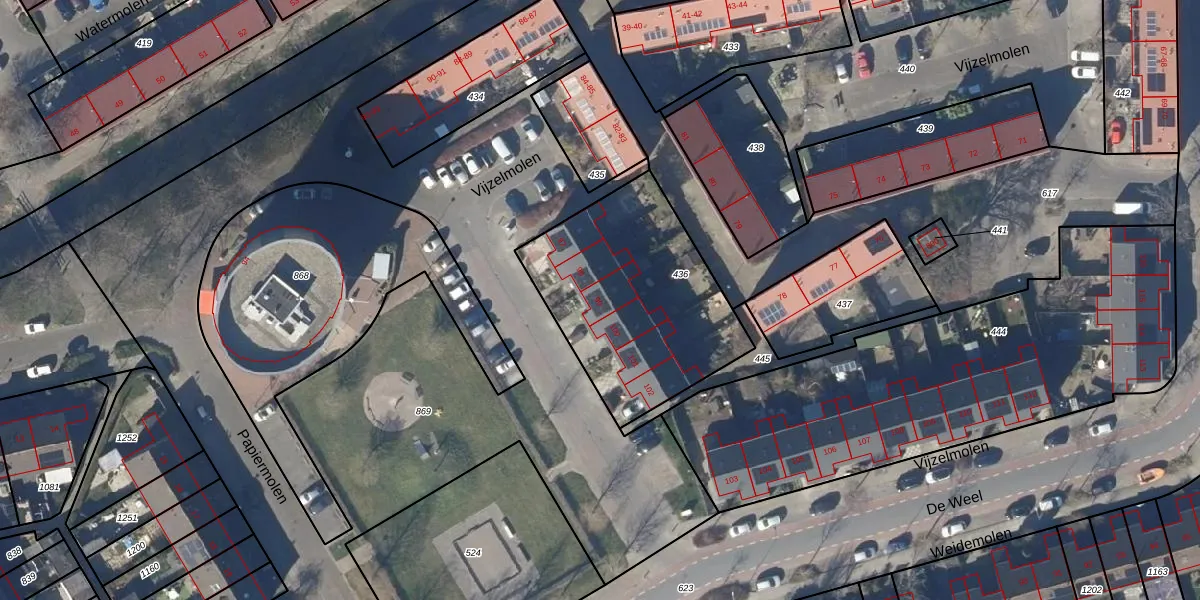 Het perceel waarop Vijzelmolen 99 staat heeft een oppervlakte van 906 m². Dit is een groot perceel. De perceeloppervlakte wordt geregistreerd door het Kadaster. Gedetailleerde informatie over de maten van dit perceel kunt u vinden in het rapport Kadastrale kaart met maatvoering van Vijzelmolen 99.