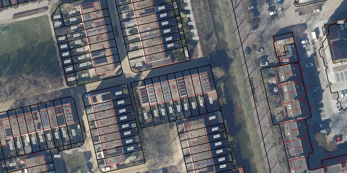 Gebruik de zoekbalk of klik op een perceel voor informatie over de adressen binnen dit perceel.