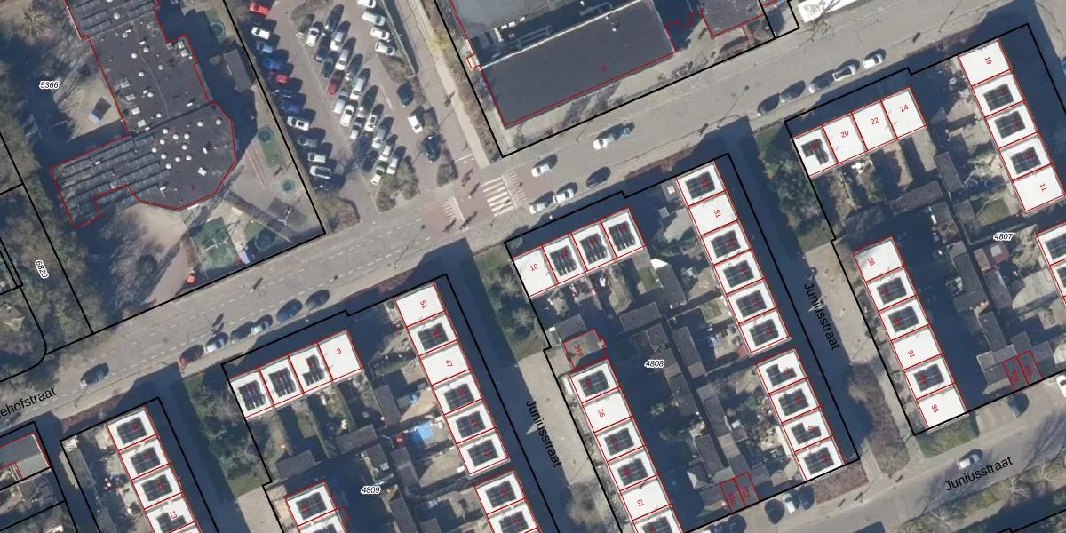 Het perceel waarop het adres ligt is HOO00-D-4808. De afkorting 'HOO00' staat voor kadastrale gemeente Hoorn. De oppervlakte van het perceel is 2918 m². Dat is groter dan gemiddeld in Hoorn, waar de gemiddelde perceeloppervlakte op 1773,6 m² ligt. Het kleinste perceel in de kadastrale gemeente is 0 m² groot. De grootste perceeloppervlakte is 28,77 km². Op het perceel liggen in totaal 23 adressen. De laatste wijziging in het de Basisregistratie Kadaster (BRK) was op 10-02-2011.