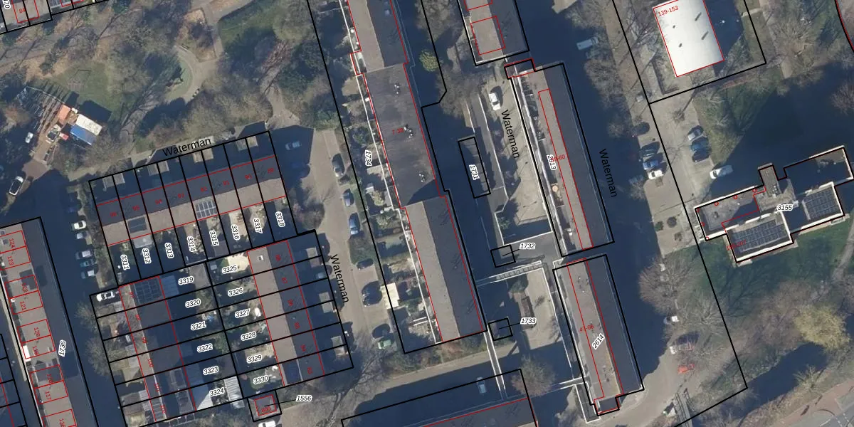Het perceel waarop Waterman 33 staat heeft een oppervlakte van 1927 m². Dit is een zeer groot perceel. De perceeloppervlakte wordt geregistreerd door het Kadaster. Gedetailleerde informatie over de maten van dit perceel kunt u vinden in het rapport Kadastrale kaart met maatvoering van Waterman 33.
