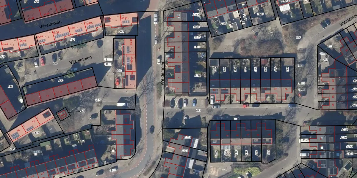Het perceel waarop Weidemolen 1 staat heeft een oppervlakte van 560 m². Dit is een groot perceel. De perceeloppervlakte wordt geregistreerd door het Kadaster. Gedetailleerde informatie over de maten van dit perceel kunt u vinden in het rapport Kadastrale kaart met maatvoering van Weidemolen 1.