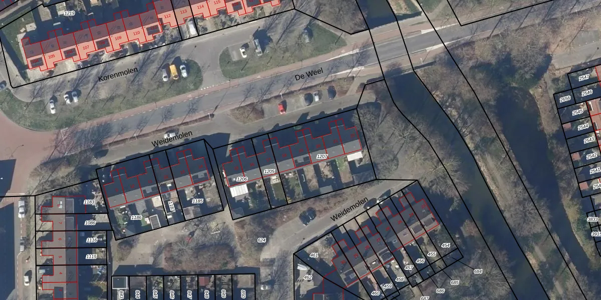 Het perceel waarop Weidemolen 19 staat heeft een oppervlakte van 753 m². Dit is een groot perceel. De perceeloppervlakte wordt geregistreerd door het Kadaster. Gedetailleerde informatie over de maten van dit perceel kunt u vinden in het rapport Kadastrale kaart met maatvoering van Weidemolen 19.