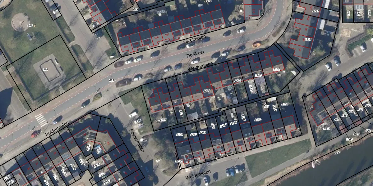 Het perceel waarop Weidemolen 87 staat heeft een oppervlakte van 708 m². Dit is een groot perceel. De perceeloppervlakte wordt geregistreerd door het Kadaster. Gedetailleerde informatie over de maten van dit perceel kunt u vinden in het rapport Kadastrale kaart met maatvoering van Weidemolen 87.