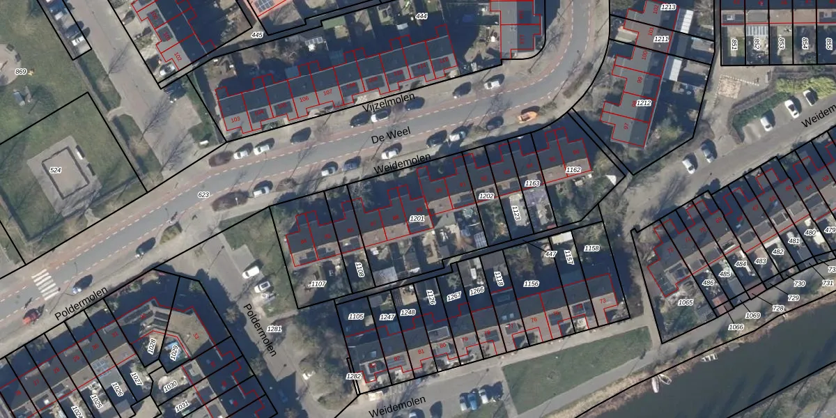 Het perceel waarop Weidemolen 89 staat heeft een oppervlakte van 708 m². Dit is een groot perceel. De perceeloppervlakte wordt geregistreerd door het Kadaster. Gedetailleerde informatie over de maten van dit perceel kunt u vinden in het rapport Kadastrale kaart met maatvoering van Weidemolen 89.