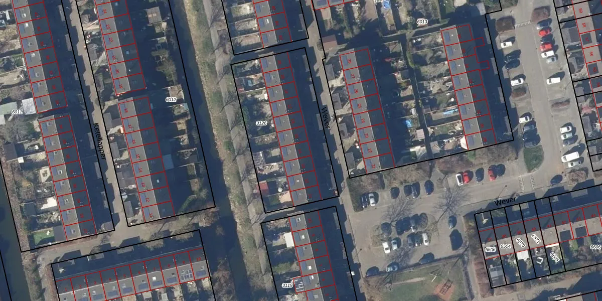 Het perceel waarop Wever 14 staat heeft een oppervlakte van 1286 m². Dit is een zeer groot perceel. De perceeloppervlakte wordt geregistreerd door het Kadaster. Gedetailleerde informatie over de maten van dit perceel kunt u vinden in het rapport Kadastrale kaart met maatvoering van Wever 14.